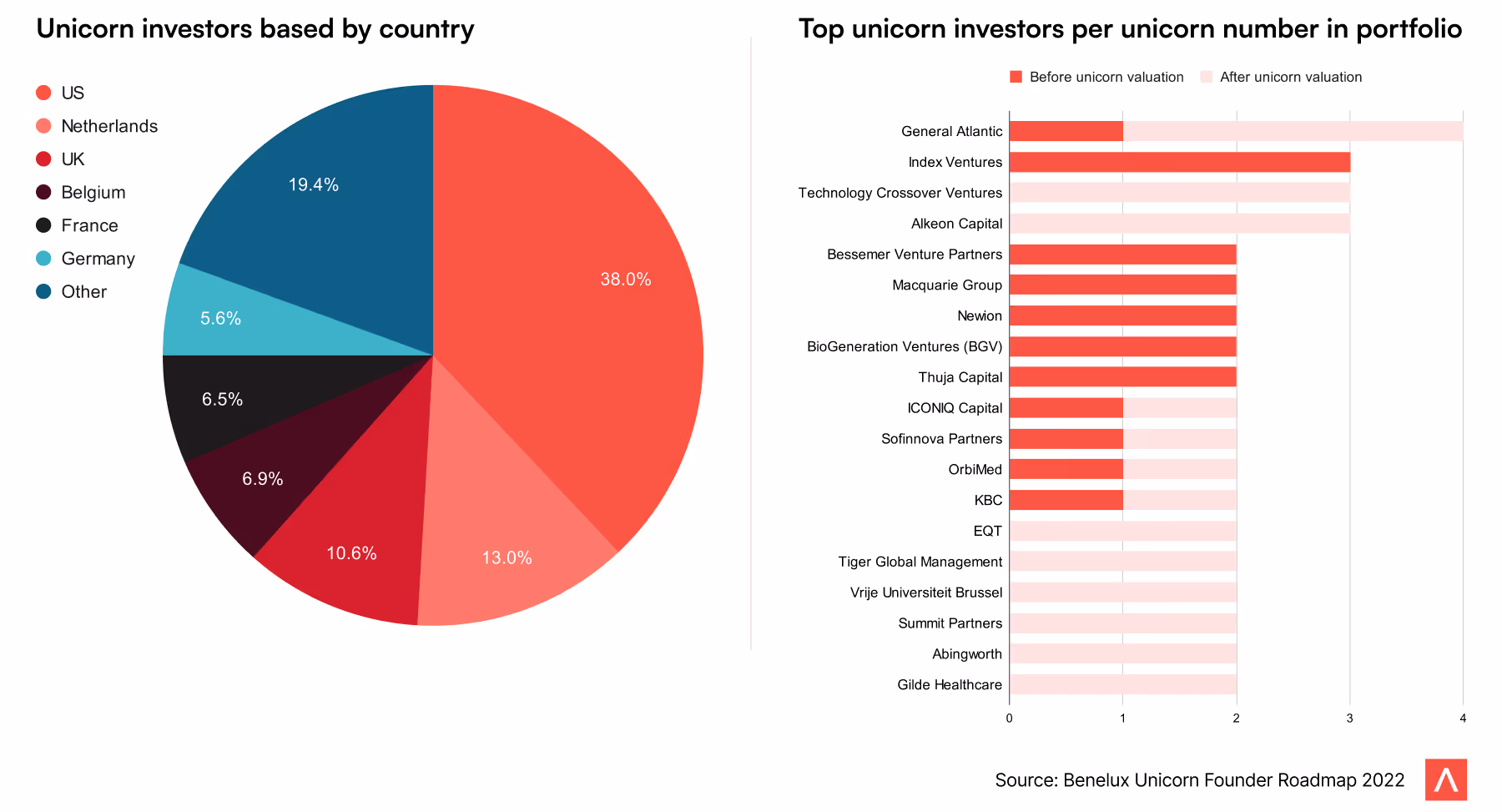 Unicorn investors: 21.3% of Benelux unicorns’ investors are from the Benelux region—most are based in the US.