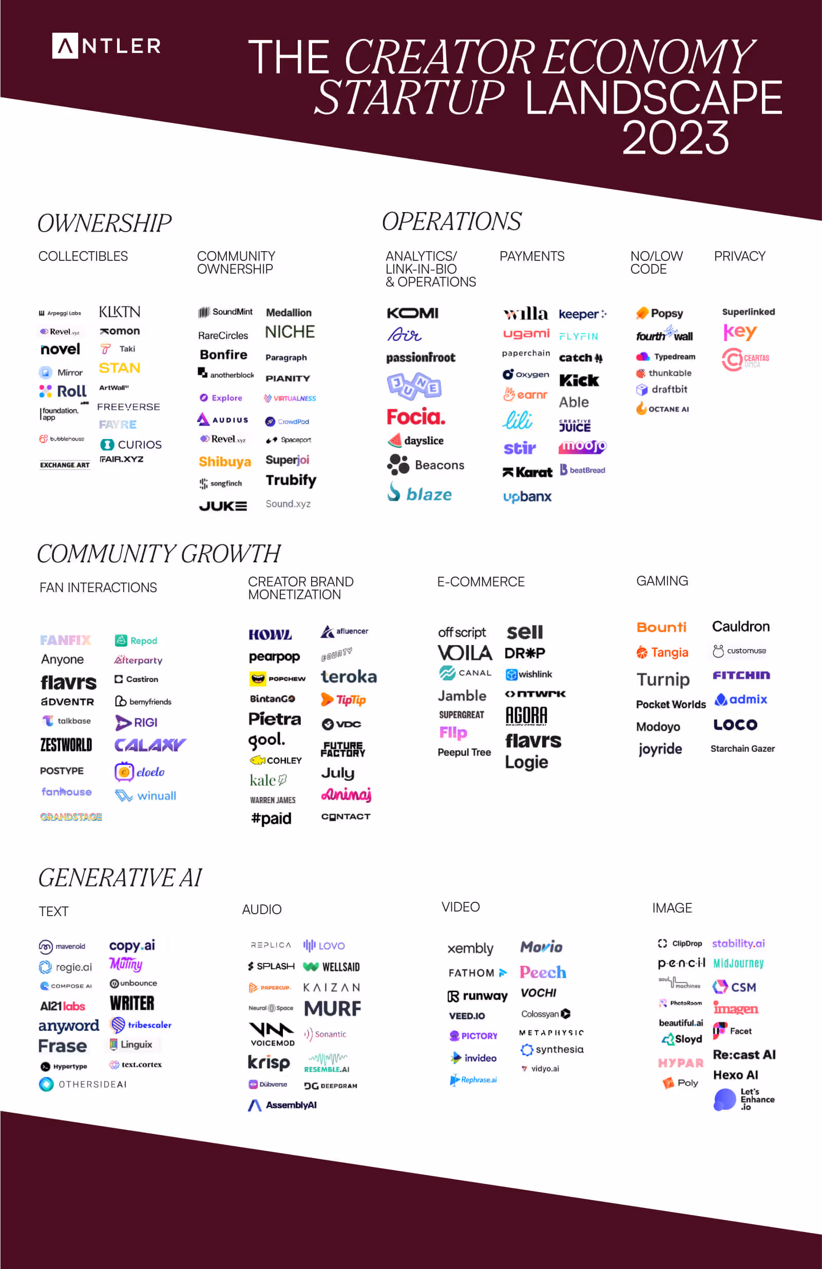 - The latest 190+ startup platforms to watch, categorized into four buckets: Web3, Generative AI, Creator Growth, and Operations.