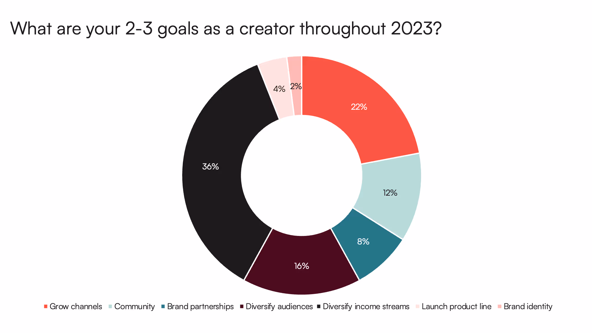 - Diversifying audiences. As creators diversify their income streams, they are also aiming to diversify their audience base. Many creators we spoke with are prioritizing having most of their audience on one platform, and also expressed interest in testing new platforms to expand their reach and build new audiences.