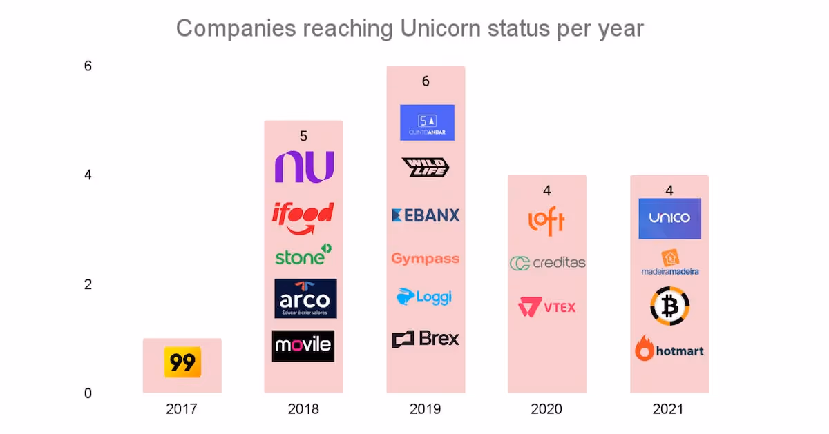 The Brazilian startup ecosystem is accelerating rapidly - 20 companies have become unicorns in the past four years.