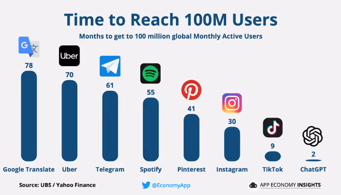 To highlight the speed that companies can now scale; the airline industry took 50 years to reach 50 million customers, Pokemon Go took 19 days and it is possible that ChatGPT, which launched in November 2022 and has claimed the spot as the fastest-growing app in history, could have reached the same size audience in a matter of hours.