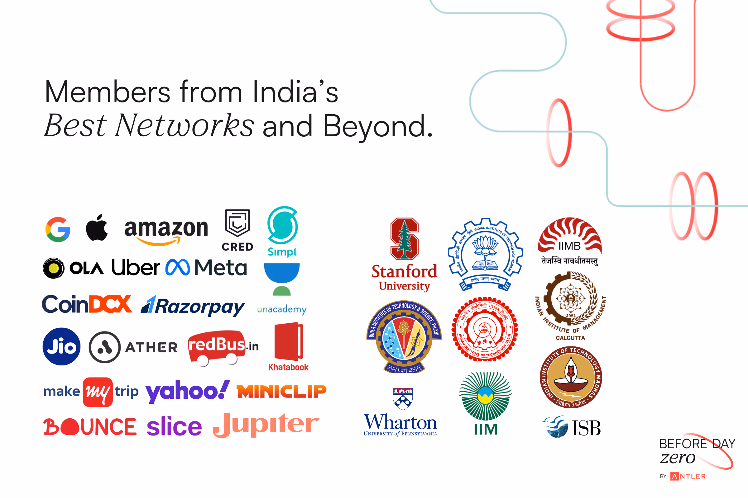 Our members include repeat founders who exited startups to Fortune 500 companies, leaders from high growth tech companies, as well as filmmakers, chefs, athletes, scientists, CXOs, and senior operators from market leaders like Stripe, Uber, Tesla, Google, and Amazon, alongside folks from top startups such as Swiggy, Ola, Simpl, Redbus, Bounce, and many more.