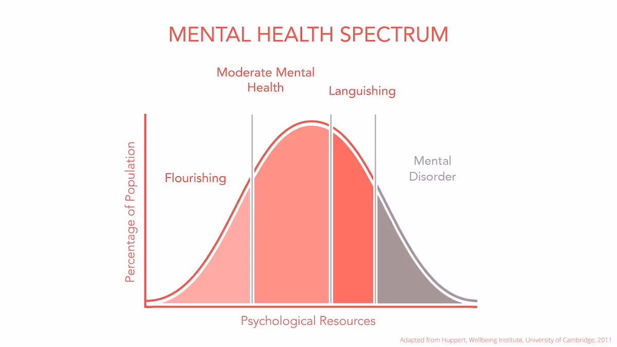 1. Flourishing Mental Health - Characterized by positive mental health involving largely stable mood, healthy coping mechanisms, consistent performance, normal sleep patterns etc.