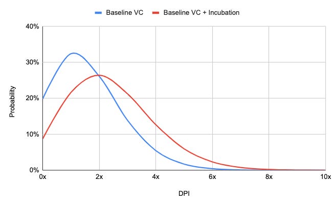I don’t know if the investment decisions of an average VC achieve better or worse survivorship statistics than what this dataset implies. But it doesn’t matter. I just want a baseline to study what happens when you introduce incubation into the investment process.